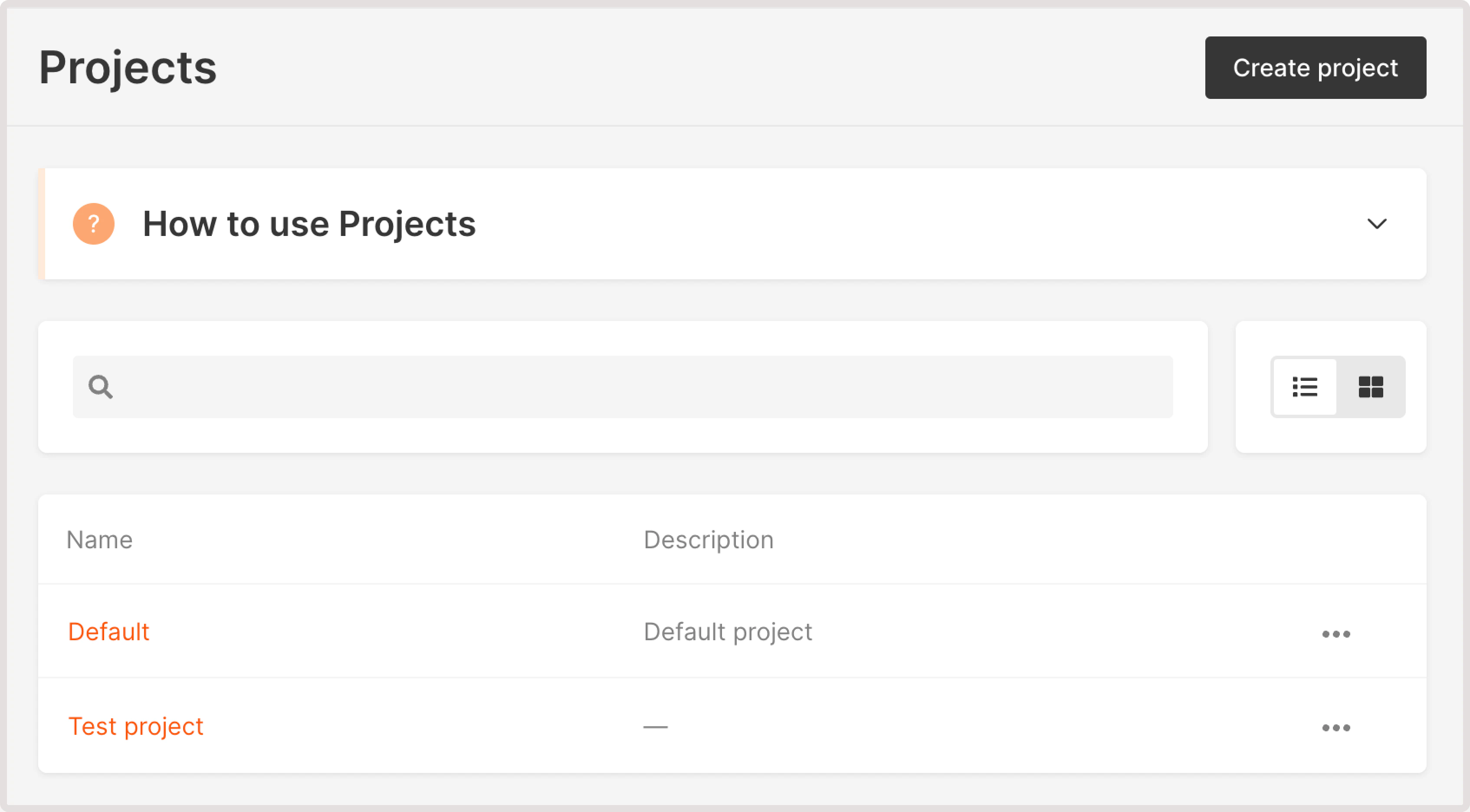 You can change the layout on the Projects page to display the information in two ways:- List view. Presents all projects as a concise list with only the project name and description displayed.